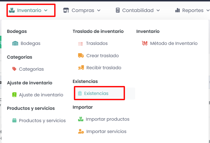 Para ver las existencias de su inventario debe realizar los siguientes pasos: