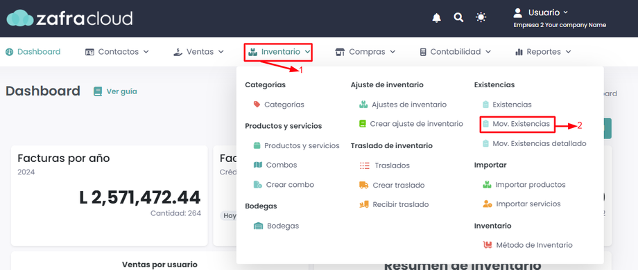 Ingresa la modulo de Inventario -> Mov. Existencias.