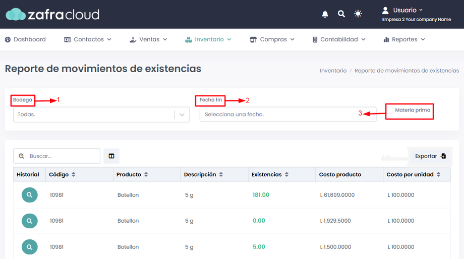 - Bodega: Bodega de la cual queremos generar el reporte.