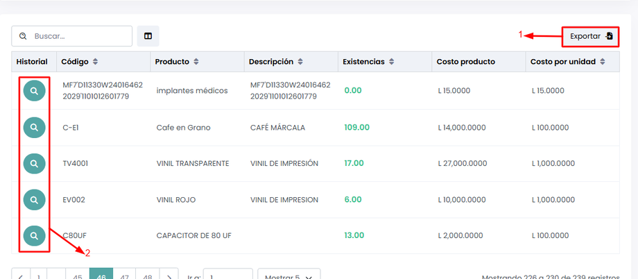 2. Lupa de búsqueda: Si deseamos saber más detalles acerca de un producto, podremos presionar aquí para obtenerla.