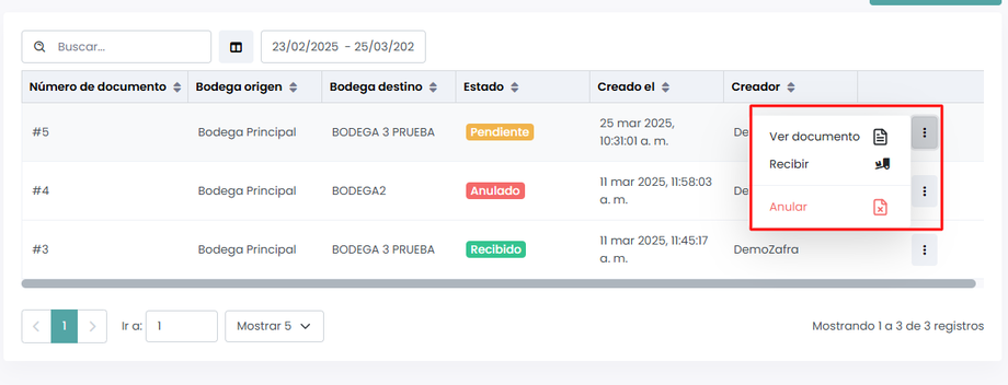 - Ver documento: Opción para visualizar el documento asociado a la transacción.