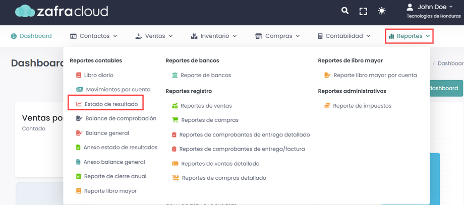 Ingresamos al módulo de Reportes -> Estado Resultado