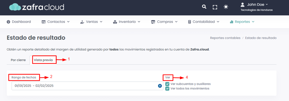 - Seleccione la opción de Vista Previa para generar el informe.