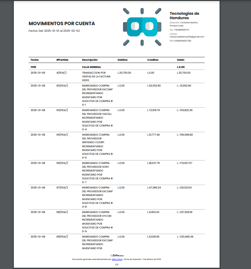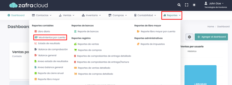Ingresamos al módulo de Reportes -> Movimiento por cuenta