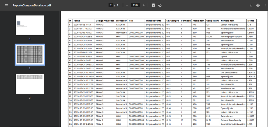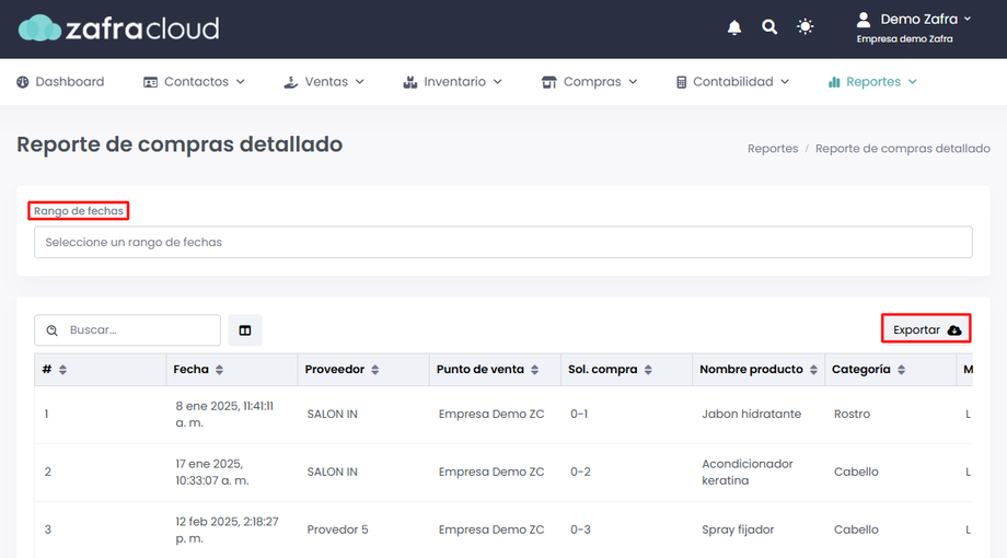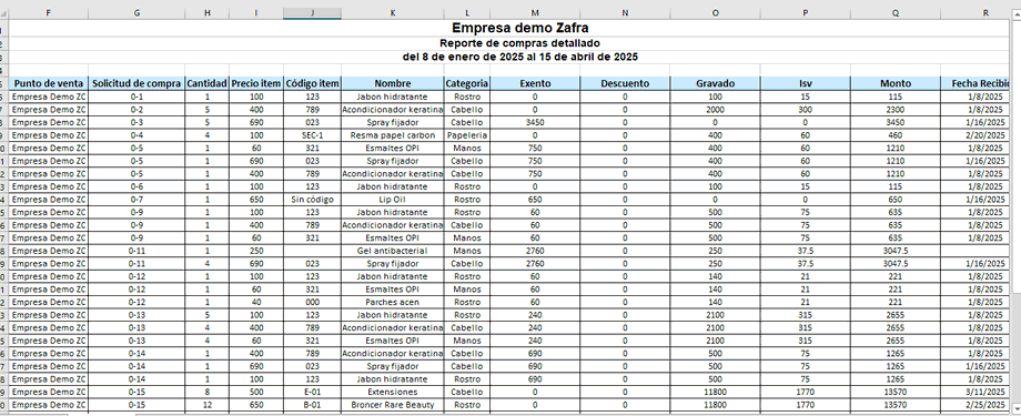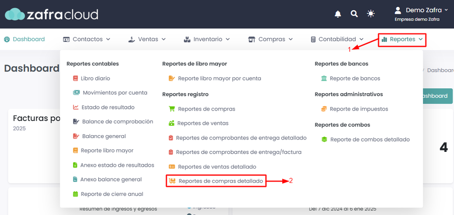 Ingrese al módulo de Reportes -> Reportes de compras detallado.