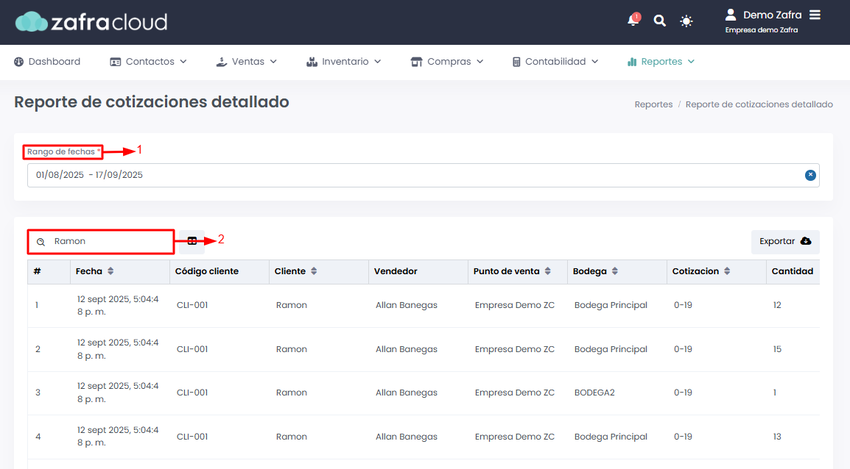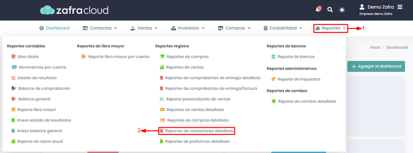 Ingresaremos al módulo de Reportes -> Reporte de cotizaciones detallado