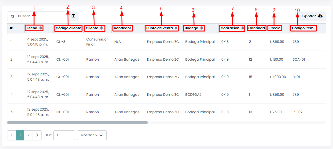 - Cotización: Número único de la cotización.