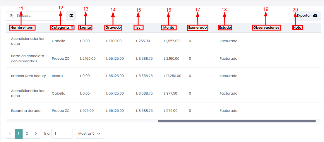- Exonerado: Monto aplicado a clientes con beneficios fiscales.