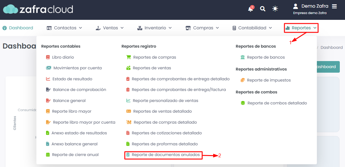 Un Reporte de Documentos Anulados es un informe que muestra el listado de facturas, recibos, notas de crédito u otros comprobantes que fueron cancelados dentro del sistema.