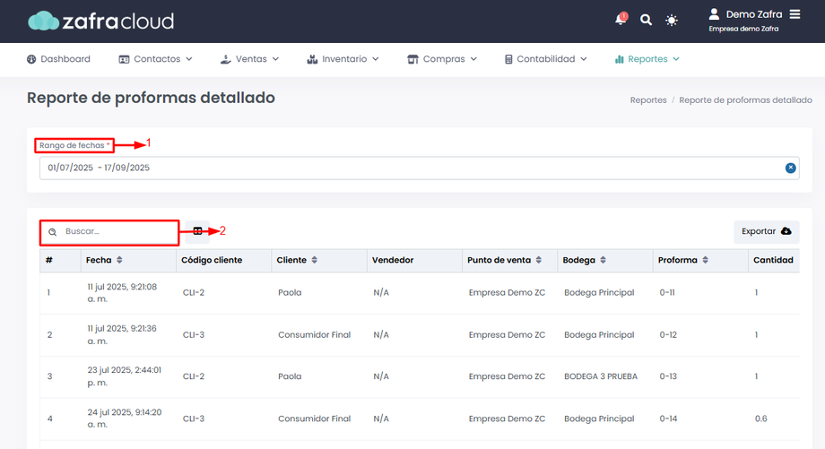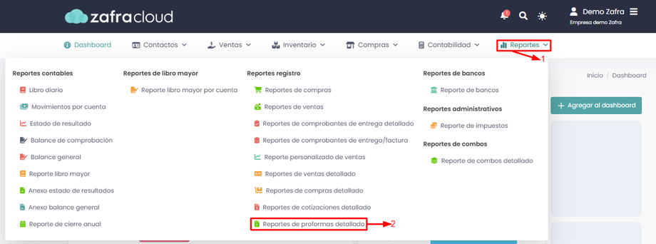 Te mostraremos los pasos a seguir para generar el reporte de proformas detallado.