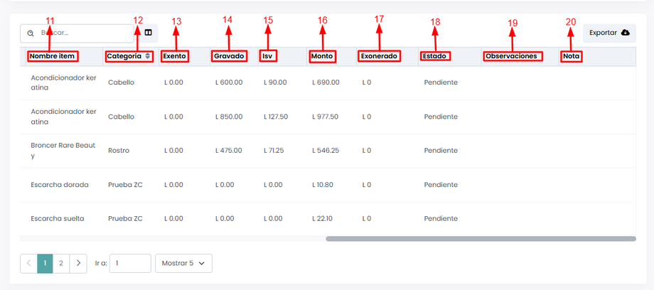 - Exonerado: Valor aplicado en caso de clientes con beneficios fiscales.