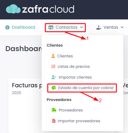 Ingresaremos al módulo de Contactos -> Estado de cuenta por cobrar.