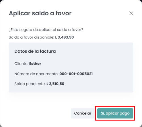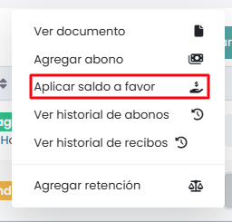 Harás clic sobre “Aplicar saldo a favor”.
