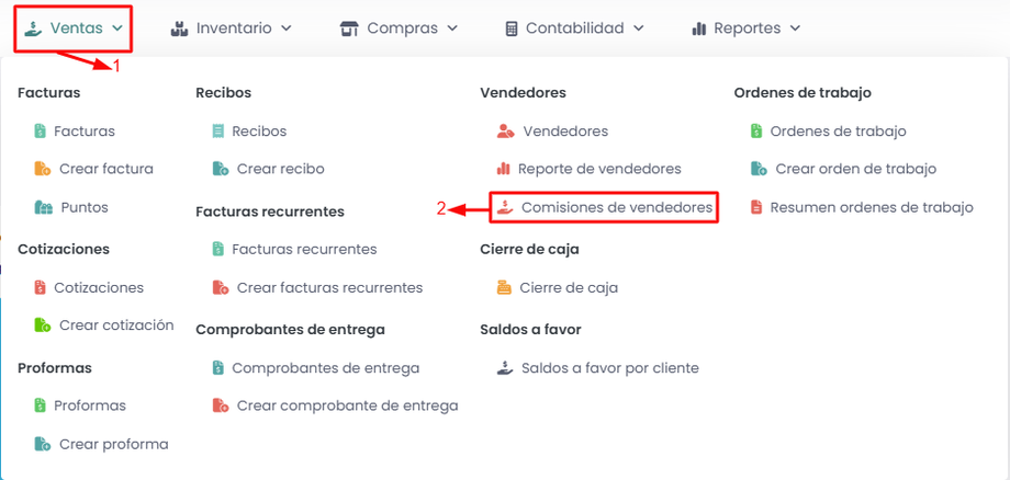 Para ver las comisiones por vendedores debemos seguir los siguientes pasos: