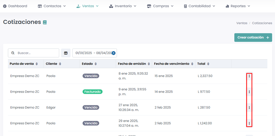 Ingresaremos al módulo de Ventas ⇾ Cotizaciones.