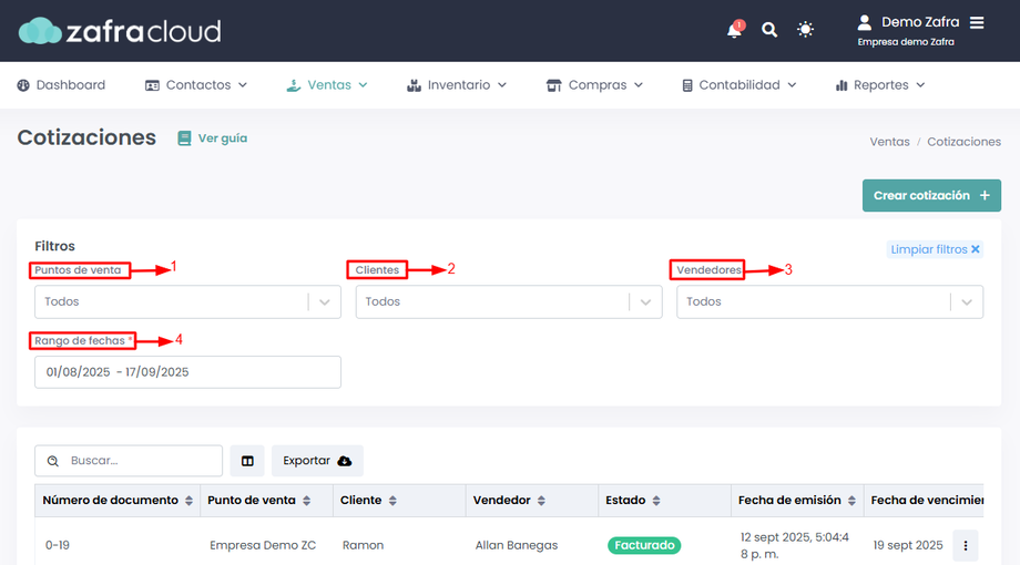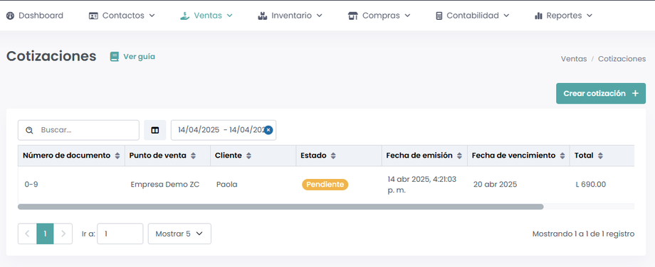 Ingresaremos al módulo de Ventas -> Cotizaciones.