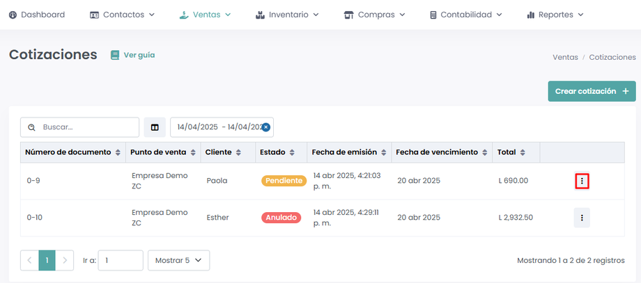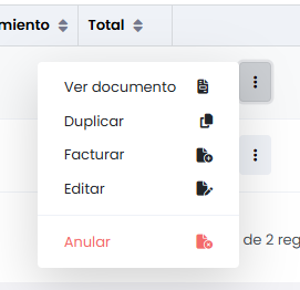 - Estado: Mostrará si está pendiente, vencida, facturada o anulada