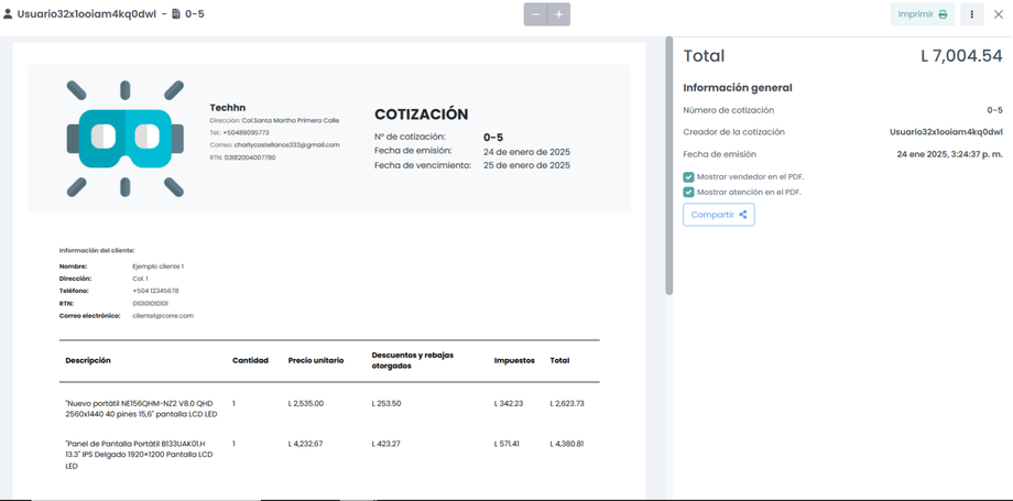Finalmente, damos clic en Crear Cotización y podremos ver nuestra cotización realizada correctamente.