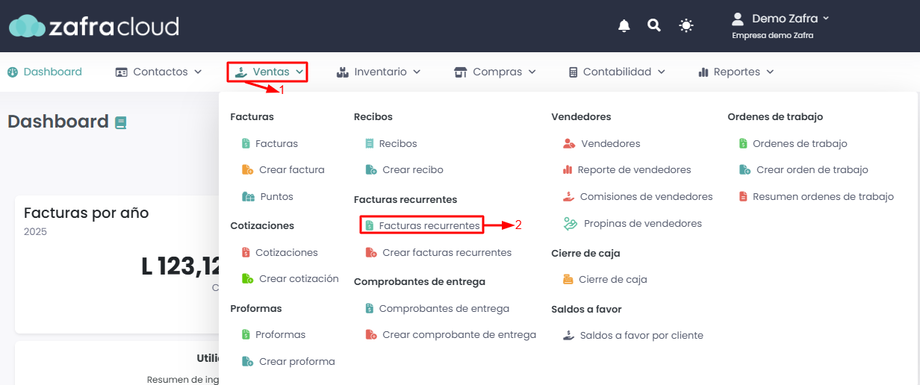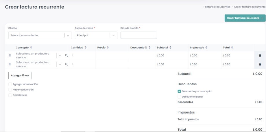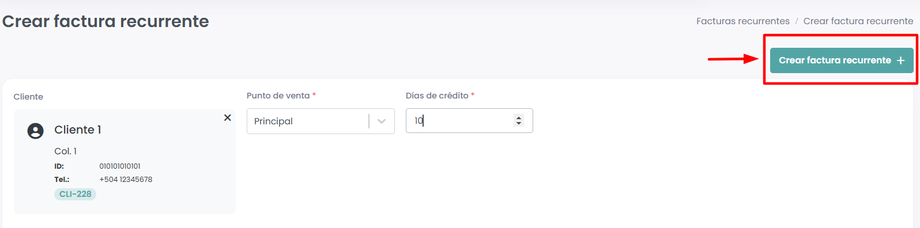 Para crear una factura recurrente debe realizar los siguientes pasos: