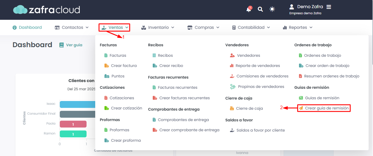 Ingresaremos al módulo de Ventas -> Crear guías de remisión