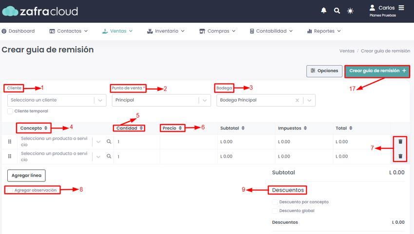 - Descuentos (opcional): Podremos agregar descuentos de forma adicional.