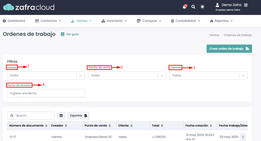 Ingresaremos al módulo de Ventas -> Órdenes de trabajo.