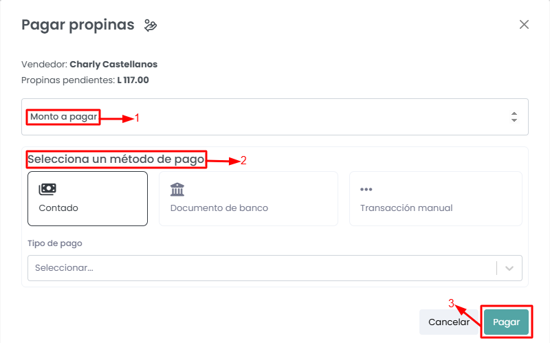 - Monto a pagar: Cantidad que se le pagara al vendedor.
