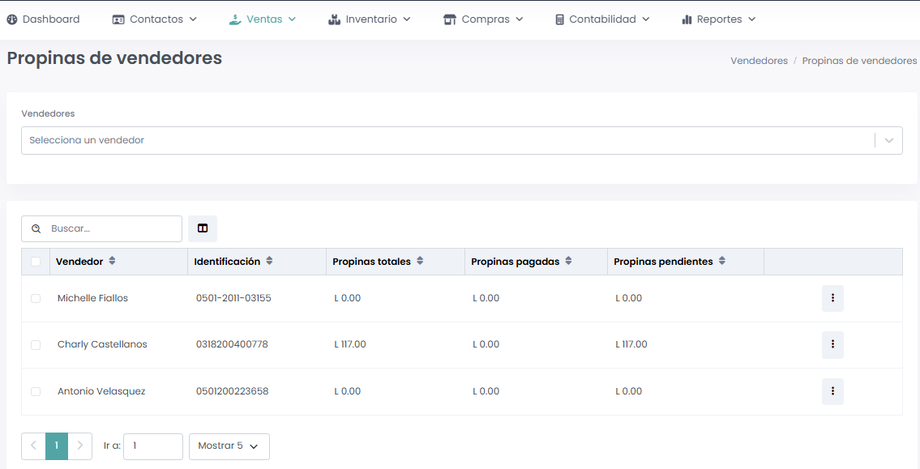 Tendremos la siguiente pantalla donde podremos filtrar por Vendedores.