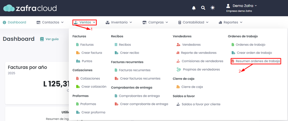 Te mostraremos los pasos a seguir para visualizar nuestro resumen de órdenes de trabajo.