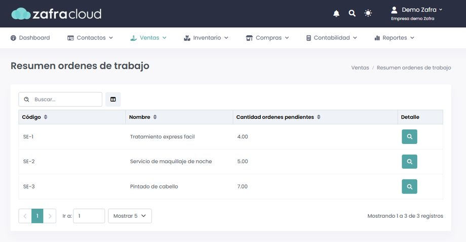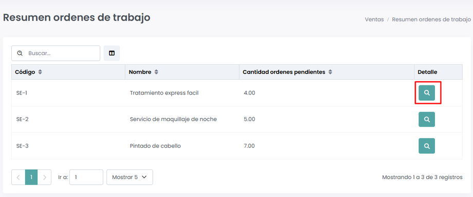 Al presionar la lupa ubicada en la parte derecha tendremos más detalles acerca de las órdenes de trabajo.