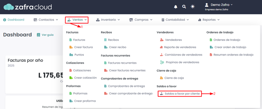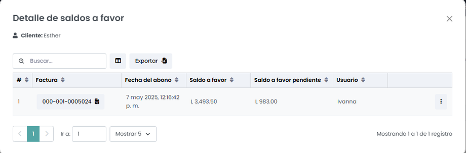 - Saldo a favor: Cantidad de dinero que el cliente tiene disponible para usar en futuras compras.