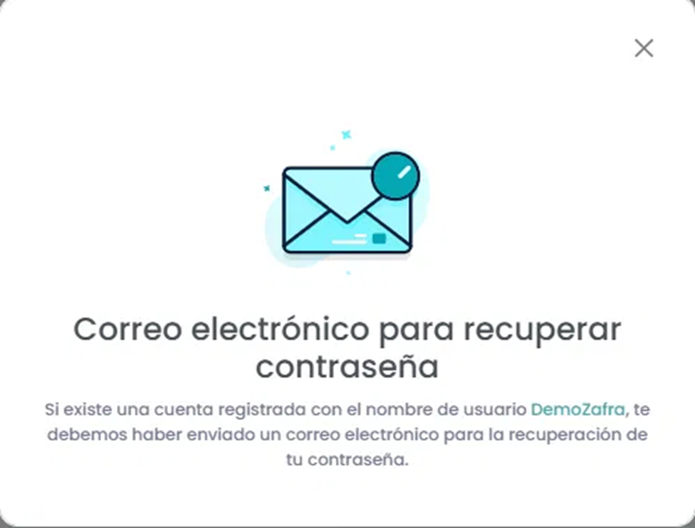 - Se nos presentara la siguiente ventana donde nos indicara que a nuestro correo fue enviado un enlace para la recuperación de la contraseña.