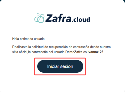 - Al abrir nuestro correo, encontraremos el siguiente mensaje con los datos de nuestra contraseña y daremos a “Iniciar sesión”.