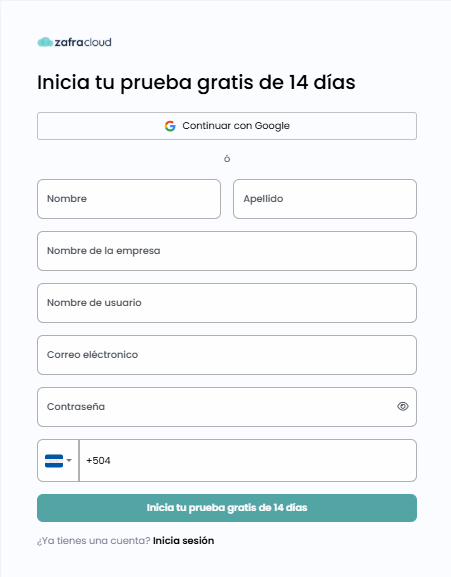 Para obtener una prueba gratuita de Zafra Cloud, sigue estos pasos: