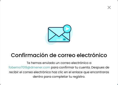 Se nos mostrará la siguiente pantalla, notificando que se nos ha enviado un correo de confirmación.